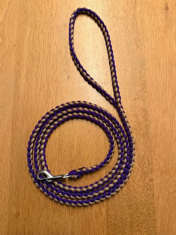 Deze prachtige rondgevlochten lijn is ideaal voor de kleine tot middelgrote honden. Voor de riem kunnen 2 kleuren worden gekozen.